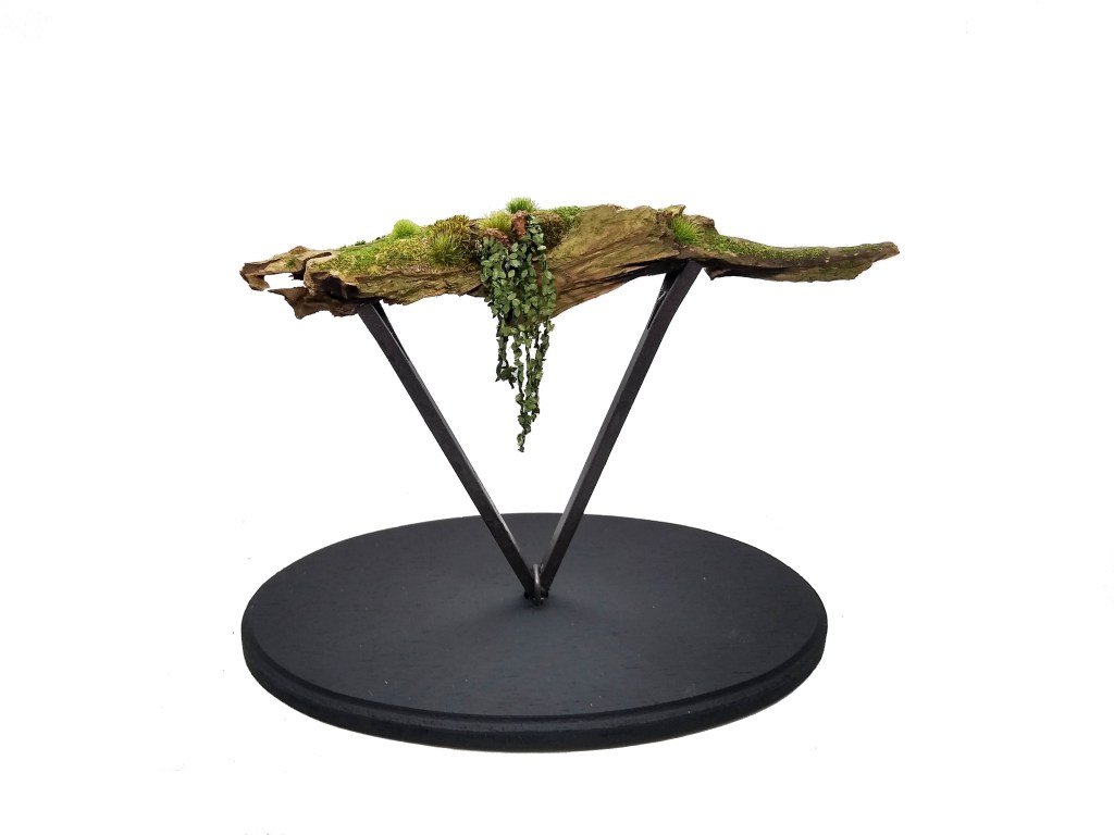 Musgo muy fino de Landscapes in Detail, matojillos de Gamers Grass , y alguna piedra natural. Planta colgante hecha scratch con hojas de AK Interactive e hilo de algodón. Montaje sobre varilla metálica y base de DM.